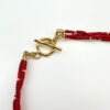 Длина — 44 см, вес — 12 г, застёжка-тогл удобна в использовании и работает как декоративный штрих. Красный традиционно ассоциируется с энергией, эмоцией и праздником; идея Carmine and Gold — о чувстве, которое греет. Колье подойдёт для вечерних выходов, дополнит smart-casual и станет подарком, говорящим о внимании и тепле. Его легко комбинировать с монохромными образами и серьгами в тёплом металле.