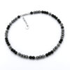 Колье «Color Crush» построено на нюансах чёрного. Гематит даёт холодный графитовый блеск и чёткую “линию”, а чёрный агат добавляет глубину и мягкую, более бархатистую поверхность. В итоге украшение выглядит собранно, современно и аккуратно держит образ без лишнего декора.