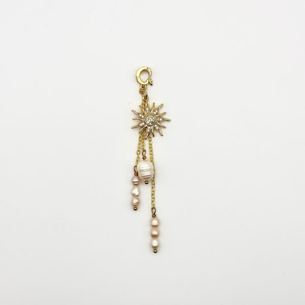 Длина — 9,5 см, вес — 5 г, застёжка — бейл с защёлкой; металлическая цепь обеспечивает удобство и надёжность. Концепция Helia Pearl вдохновлена образом солнечных бликов на воде: жемчуг отражает мягкий свет, а золотые акценты напоминают солнечные диски. Жемчуг традиционно связывают с чистотой и женственностью, его блеск добавляет глубину и элегантность.