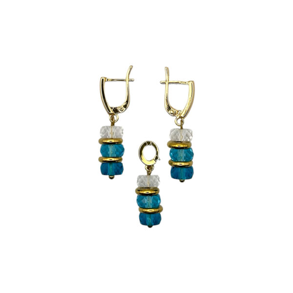 Набор из коллекции Candy Beards — серьги и кулон с бусинами из стекла и металла — создан, чтобы добавить образу лёгкости и свежести. Белая и голубая палитра выглядит воздушно, а фурнитура цвета золота 24К придаёт тёплое свечение и аккуратную завершённость.
