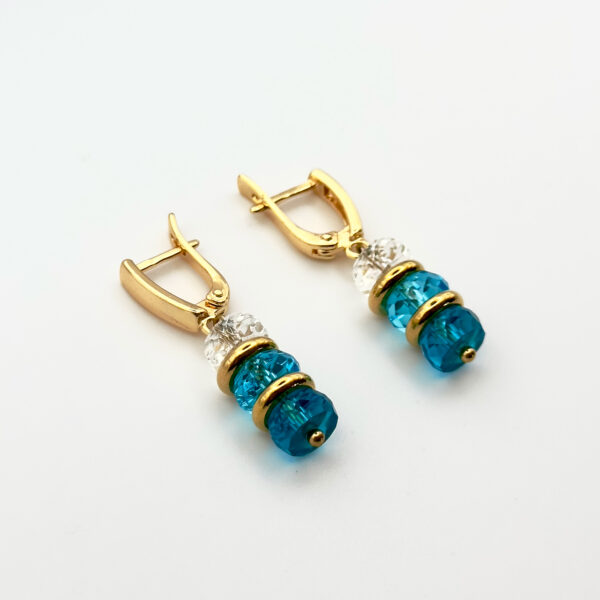 Серьги длиной 3,5 см, вес пары — 10 г, застёжка — английский замок; бусины из металла и фурнитура обеспечивают надёжность, а кулон поддерживает ту же палитру, создавая визуальную целостность. Идея коллекции — игра цвета и света без перегруза: оттенки читаются легко, переходы выглядят деликатно. Бело-голубой дуэт ассоциируется со свободой и ясностью, что делает комплект универсальным.