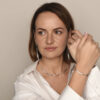 Довжина – 20 см + подовжувач 5 см, вага – 8 г, застібка – карабін-лобстер; ювелірний трос і металевий ланцюг відповідають за міцність і акуратну посадку. Ідея колекції – дорога до ясності: перли традиційно символізують ніжність і гармонію, їхній м’який блиск розкривається в русі, створюючи відчуття сяйва без перевантаження. Металеві деталі задають чіткий контур, підтримуючи графіку лінії.