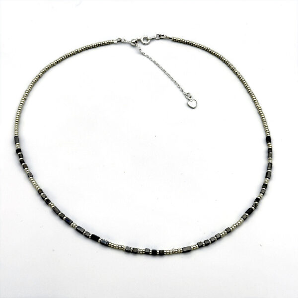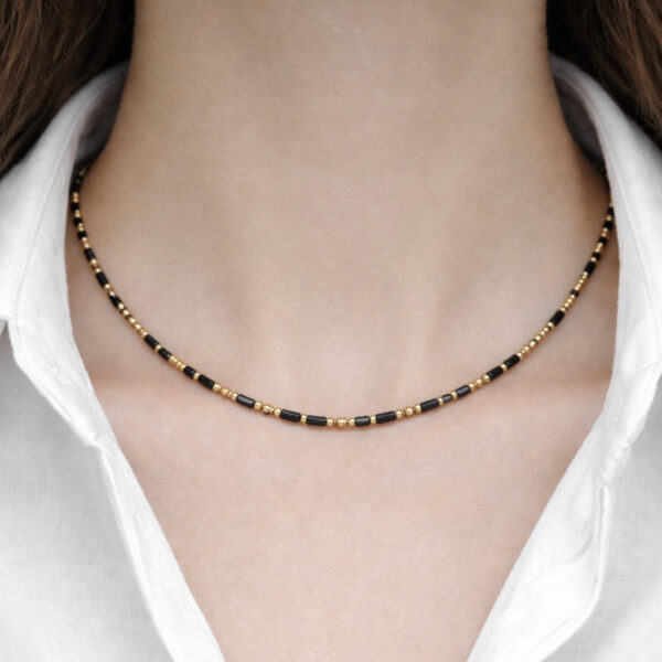 Кольє DIT DAH by SILARIUM — це фраза, зібрана не літерами, а ритмом намистин. Принцип простий: короткий елемент DIT, довгий DAH і пауза. Замість напису виходить стримана графіка, яку “зчитують” тільки уважні.