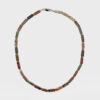 Кольє з колекції Urban Milestones з намистинами з яшми та металу передає ритм великого міста. Багатобарвна палітра – коричневі, червоні, зелені та жовті відтінки – створює динаміку, а родієва фурнітура додає холодного сяйва. Композиція має архітектурний і сучасний вигляд.