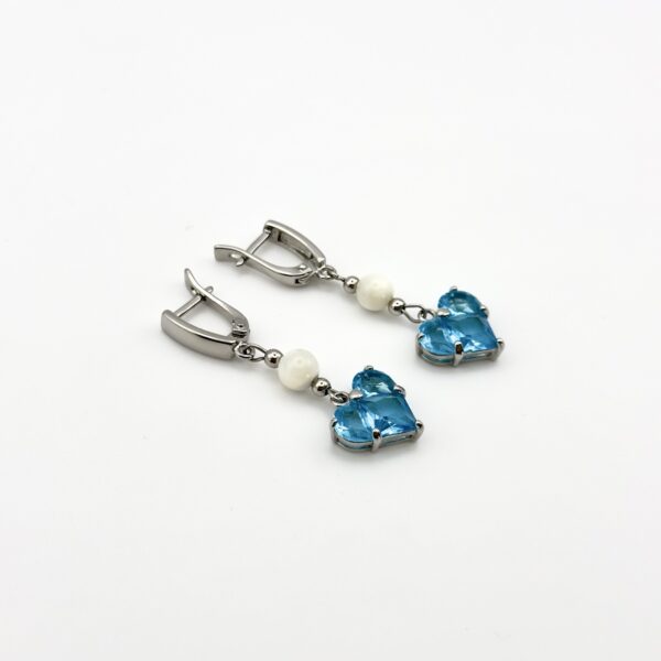 Набір з колекції Color Crush об’єднує сережки і кулон з намистинами з білого і блакитного перламутру, доповненими підвіскою з кристалом. Родієва фурнітура підкреслює гру відтінків, а асиметрична композиція створює легкий, грайливий характер. Такий комплект має свіжий і яскравий вигляд, зберігаючи життєрадісну атмосферу.