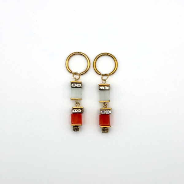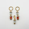 Набір Satin Shine, що включає сережки та кулон, створений для тих, хто цінує витонченість у деталях. Білі та помаранчеві намистини зі скла сяють м’яким світлом, а золота фурнітура підкреслює вишуканість композиції.
