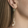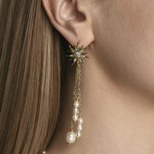 Сережки з колекції Helia Pearl з намистинами з перлів і металу втілюють свіжість і м’яке сяйво. Фурнітура з покриттям золота 14К підкреслює теплоту відтінку, а витончений англійський замок забезпечує комфорт і елегантність. Прикраса виглядає легкою та універсальною.