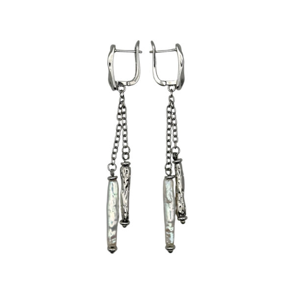 Сережки з колекції Pearl Route з білими намистинами з перламутру і металу – чистий, універсальний акцент на кожен день. Родієва фурнітура підкреслює холодне сяйво, а продумана форма робить образ стриманим і елегантним.