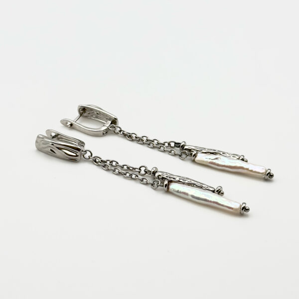 Довжина – 7,5 см, вага – 9 г, застібка – англійська; металеві елементи та ланцюг забезпечують надійність і акуратний силует. Перламутр традиційно пов’язують з ніжністю і світлом, його м’який перелив підтримує ідею Pearl Route – руху до гармонії та ясності, а металеві акценти збирають композицію в стійку лінію, зберігаючи акуратні пропорції і чистоту форми.