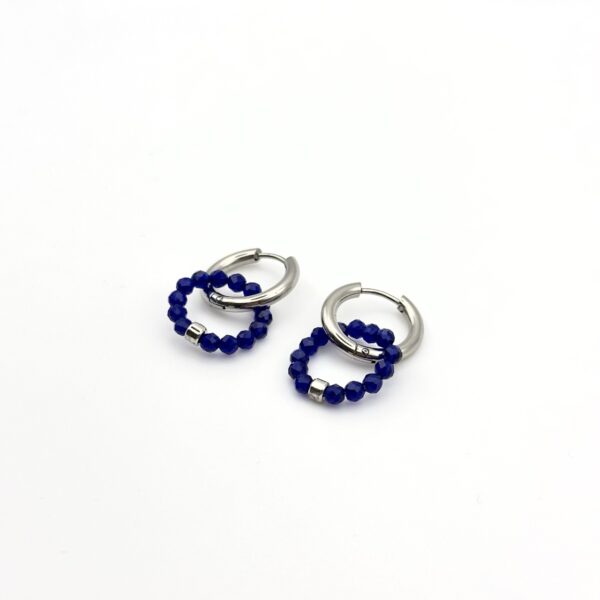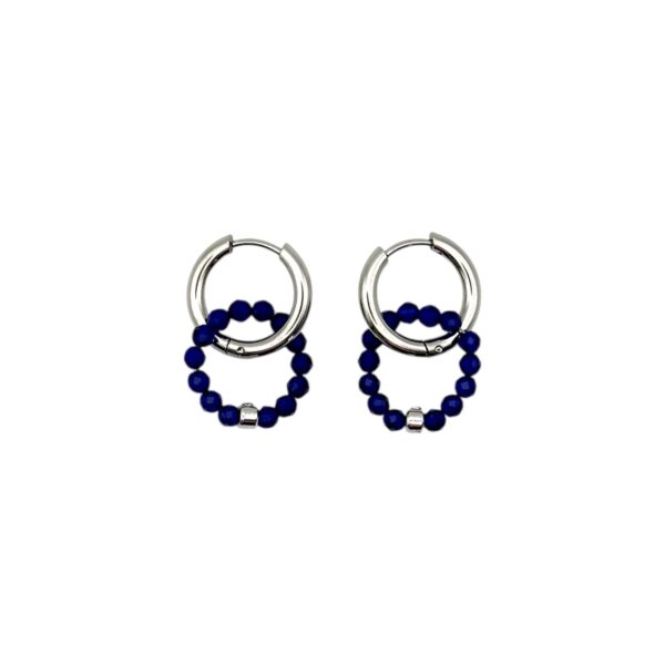 Сережки з колекції Zirconia Core з синіми намистинами з цирконію втілюють лаконічну елегантність. Родієва фурнітура підсилює сяйво каменю, а форма конго робить модель зручною та універсальною. Композиція виглядає мінімалістично, зберігаючи сучасний акцент.